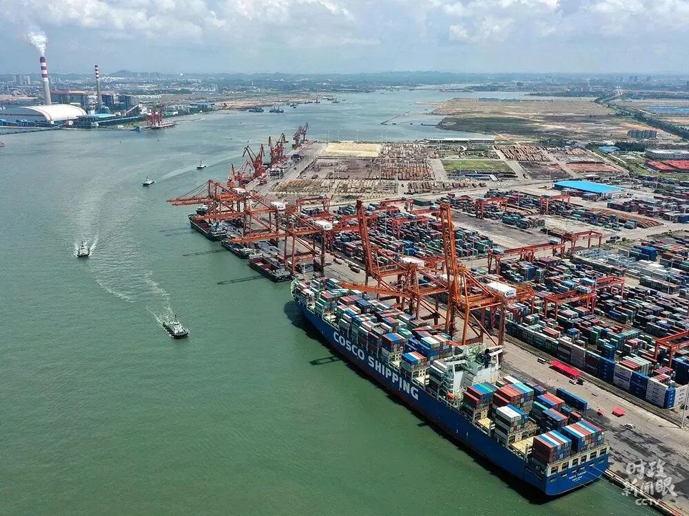 历经8年谈判,区域全面经济伙伴关系协定(RCEP)今年11月15日正式签署,全球最大的自由贸易区由此诞生,覆盖东盟和中日韩等经济体。协定生效后,区域内90%以上的货物贸易将实现零关税。△今年,西部陆海新通道(钦州港)海铁联运集装箱办理量已突破20万标箱,同比增幅达110%。钦州港是海运、铁路、公路运输无缝衔接的重要枢纽站。