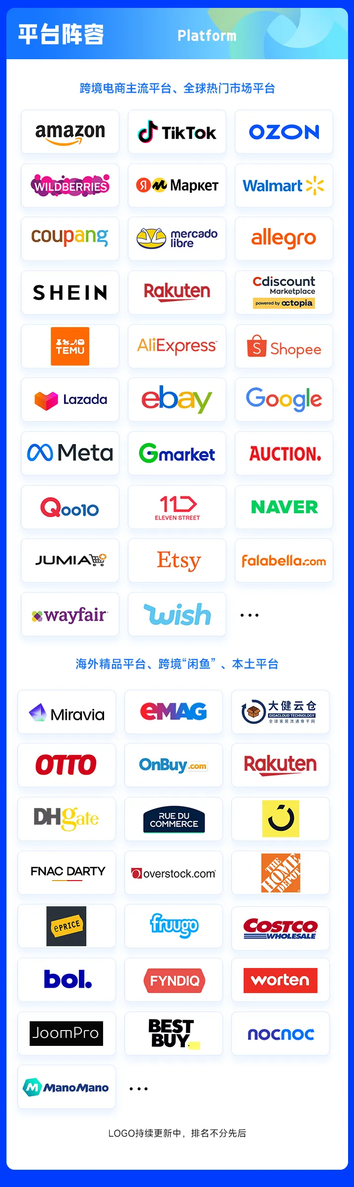本次展会以50+顶尖电商平台为核心锚点,一站式整合物流、财税、支付、AI等服务,同时集结200+平台招商经理及行业头部大卖,打造平台-市场两大生态专区对接模式,实现平台资源-运营方法-市场机遇的无缝衔接。同时特设AI跨境体验区、平台私享会等特色专区,组建官方定制个性化逛展团,将跨境新技术与精准资源对接渠道融入跨境生态网络,助力企业打通“成本优化-海外市场-快速增长”全链路,在生态协同中抢占2026年跨境增长先机。