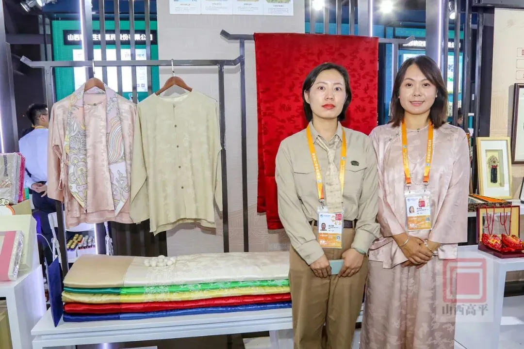 潞绸织造是高平的一项传统技艺,于2014年入选国家级非物质文化遗产名录。在山西展厅,高平潞绸新娘婚被系列产品展陈夺目。瑰丽斑斓的色彩、质地细腻的面料、种类多样且寓意吉祥的产品,吸引了不少参观者前来了解潞绸文化,购买潞绸产品。