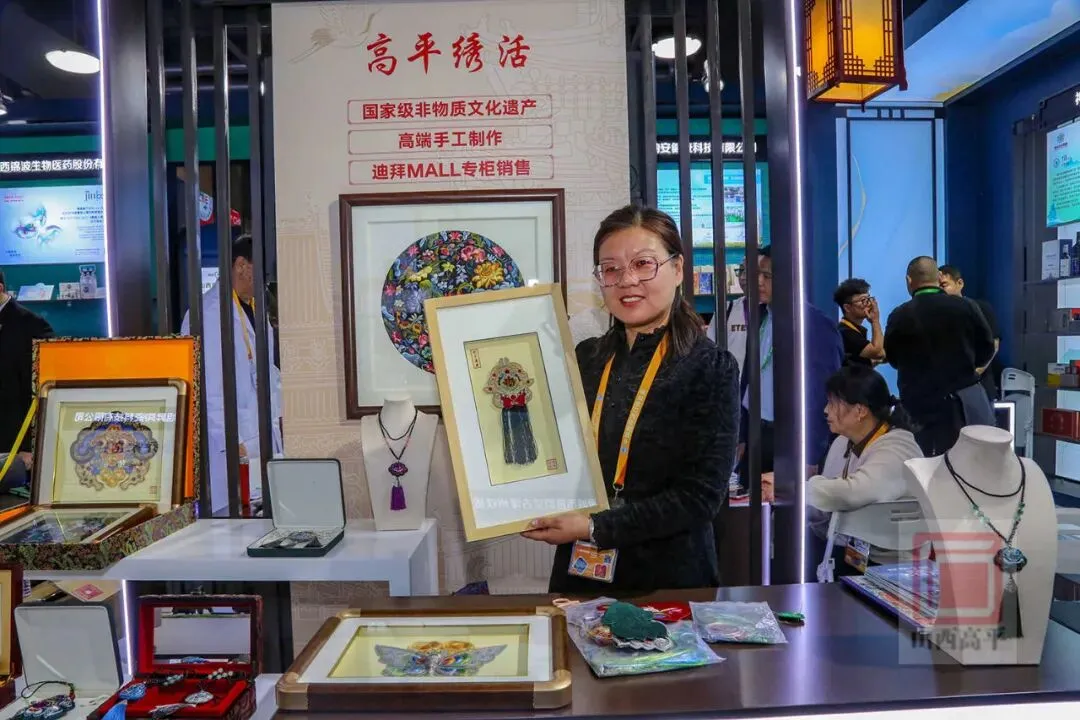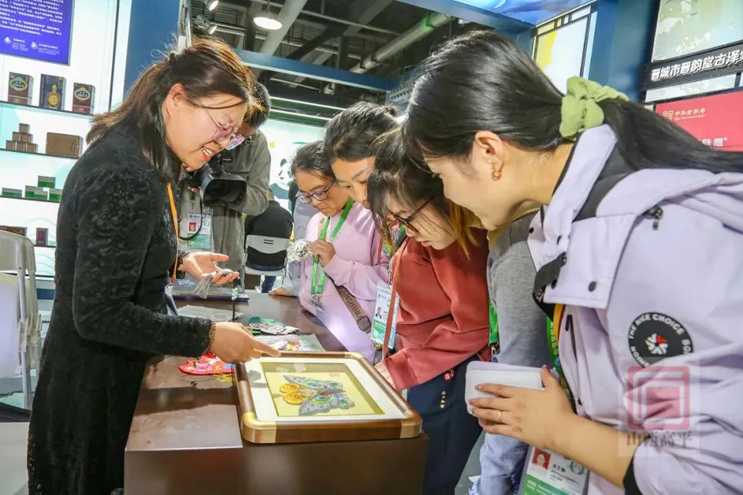 随着《黑神话:悟空》的持续爆火,山西不断登上热搜。这一次,“跟着悟空游山西”的热度传递到了进博会现场。在高平绣活展区,高平绣活第四代传承人赵翠林带来了《黑神话:悟空》取景地高平铁佛寺二十四诸天里面的《崇宁真君》刺绣作品。高平绣活与高平彩塑文化深度融合,极具文化传承性和创新性,吸引了不少人的目光。