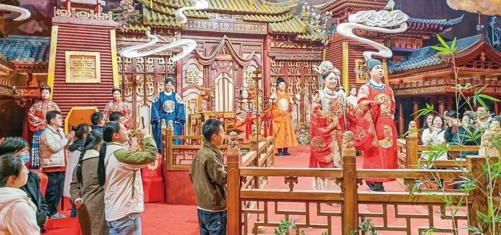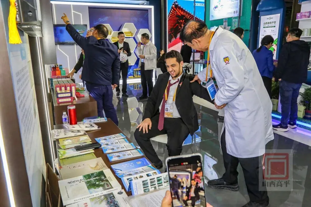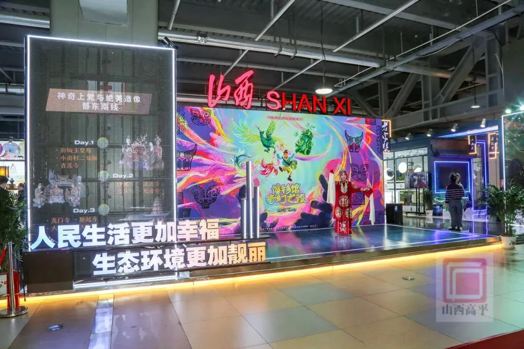 与此同时,在“跟着悟空游山西”互动打卡区,上党梆子惊艳亮相。青年演员身着华丽的戏服,扮相玲珑俊美,随着或高亢,或婉转的唱腔响起,吸引了不少观展者围观聆听。上党梆子的沉浸式演绎,让大家在山西展厅,可观可听可赏,极具互动性,感受到了高平浓厚的非遗文化意蕴。