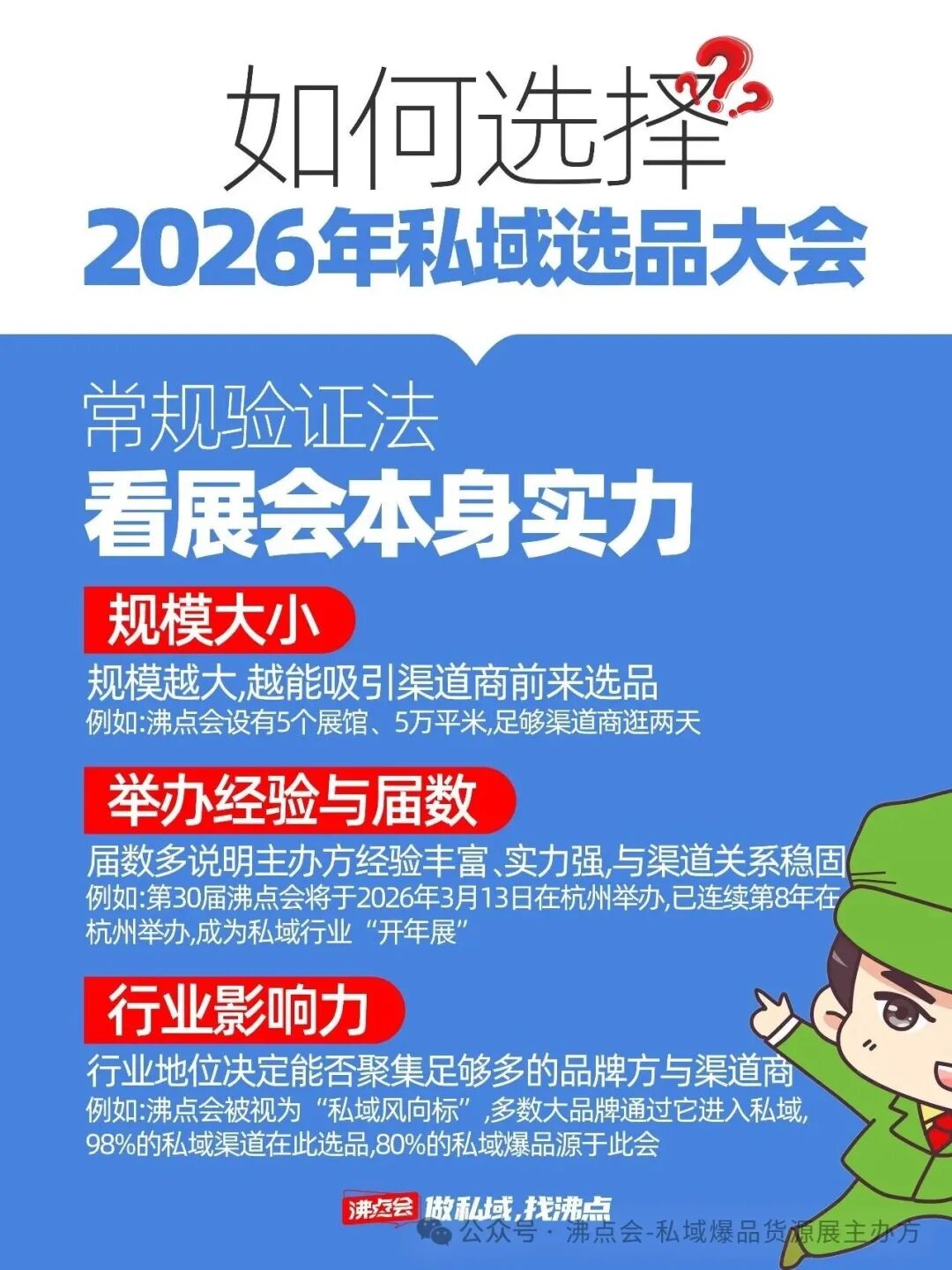 面对市面上琳琅满目的展会,品牌方和渠道商该如何选择?是看热闹还是看门道?其实,选展就像投资,需要一套严谨的验证逻辑。今天,我们就套用 “常规验证法”与“关键匹配度” 这套方法论,为你深度剖析为什么第30届沸点会暨杭州私域爆品展,会成为2026年私域人必须奔赴的第一站。