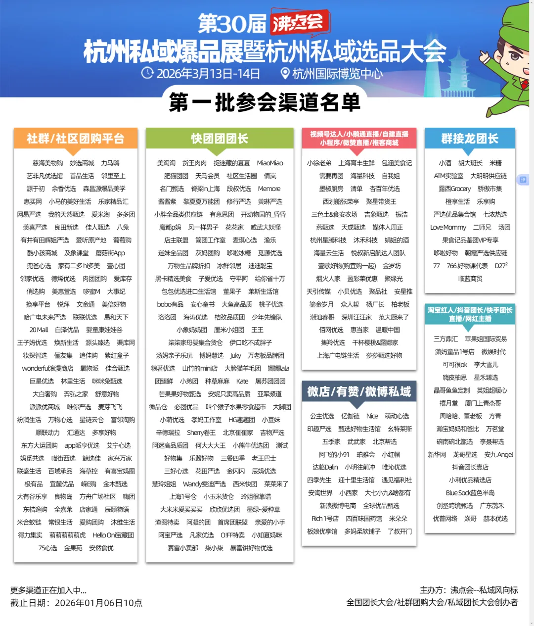 2. 举办经验与届数:30届的“沉淀”届数是主办方经验最好的背书。沸点会深耕行业多年,至今已成功举办至第30届-2。这不仅是数字的累积,更是与渠道商关系的稳固沉淀。据悉,这已经是沸点会连续第8年在杭州举办开年展,早已成为私域行业心照不宣的 “开年第一展” 和“定心丸” 。