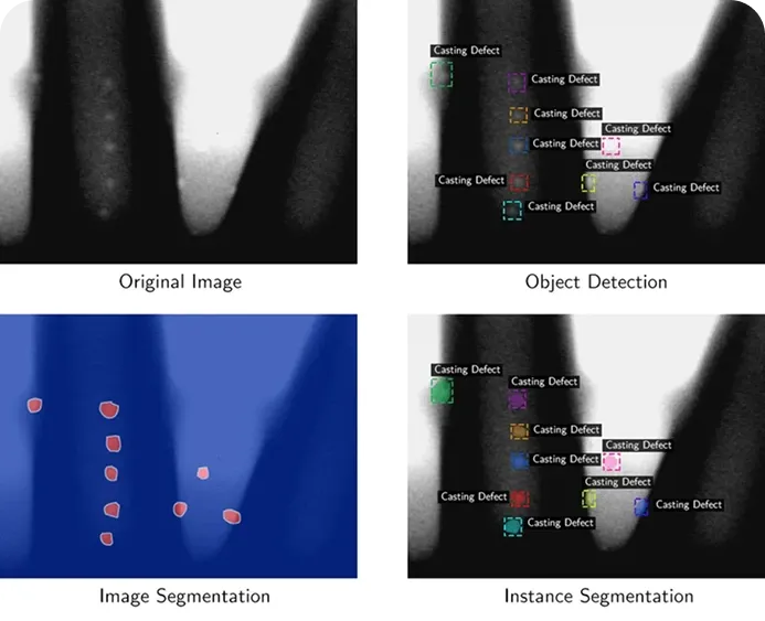 在目标检测的基础上,进一步在像素级别勾勒出缺陷的精确形状和面积,能精准测量缺陷的大小、扩散范围和严重程度,适用于对缺陷精度要求极高的精密制造领域,如半导体、电路板质检。