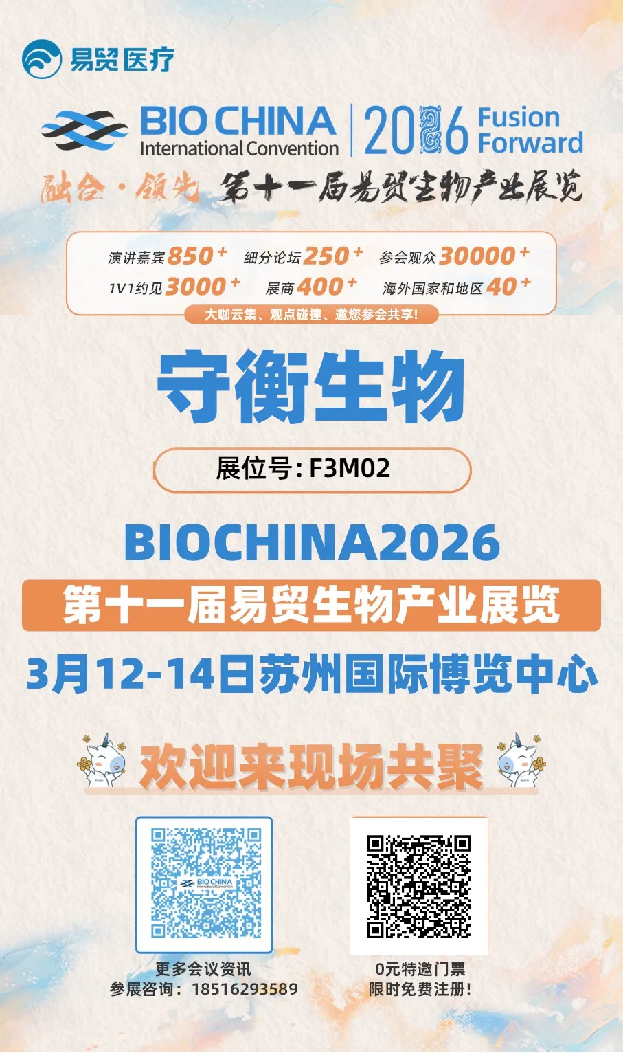 CHINA2026(第十一届)易贸生物产业展览将于2026年3月12-14日在苏州国际博览中心召开,现场将邀请30000+参会观众,40+海外国家和地区,850+演讲嘉宾,设置250+细分论坛,3000+约见达成,400+展商参展。会议主题为“融合 · 领先”。融合,是生态引擎,多元力量解锁发展密码;领先,是未来方向,突破边界定义产业高度。站在新十年的起点,BIOCHINA2026将携手全球伙伴,见证中国创新药从追赶到引领的蜕变历程,共同迈向中国生物医药的下一个黄金时代!