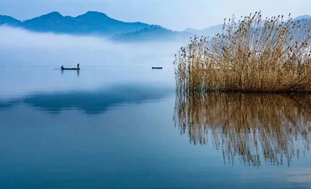 在王坚的《钱湖早安》中,晨光如温柔的明眸,穿过薄雾轻抚过东钱湖如镜的湖面。远山含黛,与早起的渔船构成诗意而永恒的山水化境,而那丛散淡而傲立的芦苇,告诉我们又是一年初冬的季节。早安,这是对熟悉的乡土生活最亲切的问候。