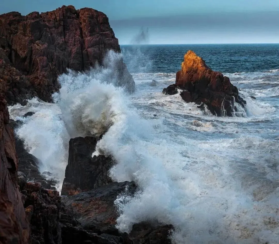 同样是大海,王博雷的《大陈岛海岸》,这片被岁月浸润的海域,浪花碎玉般飞溅的瞬间,既是拍打也是拥抱;涛声起伏的节律,既是对话也是呼吸。海浪不知疲倦地攀上礁石又依依退去,礁石以满身的沟壑铭记每一道吻痕——它们用亿万年的厮守,完成了对彼此最深的理解。这幅照片让我们熟悉的大海变得陌生而新鲜:原来最壮阔的风景,往往藏在这最寻常的相依里。