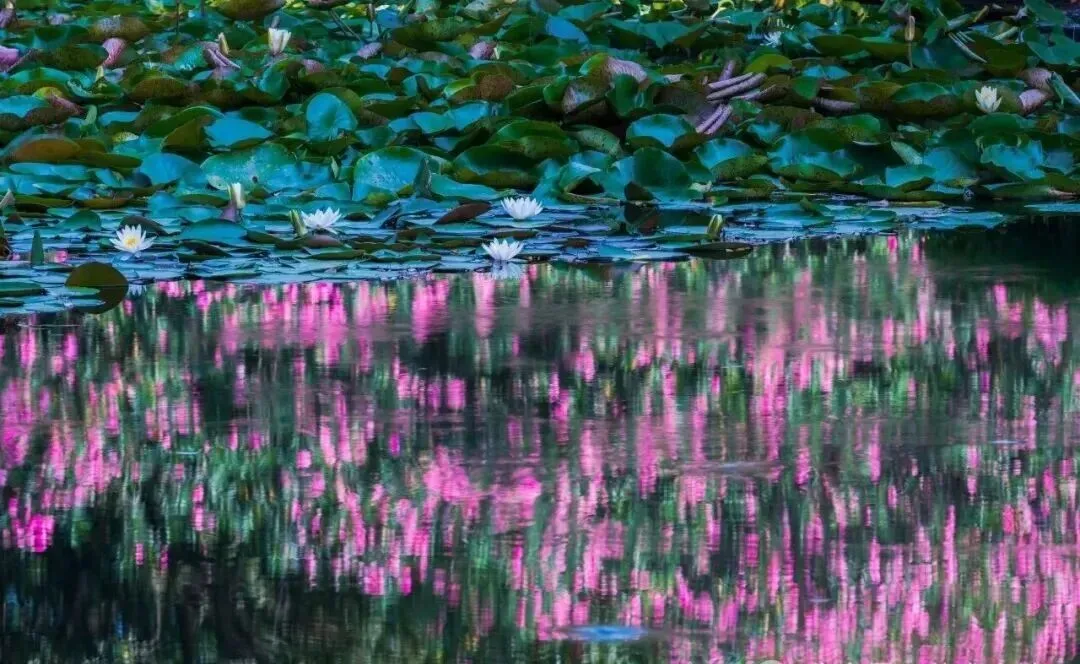 同样是光影,励军辉的《浮影幻色》犹如莫奈的《睡莲》——让寻常的水面,化作光影交织的梦境。这组在鄞州公园家门口拍摄的美景,盛开的荷花与水波中的倒影相互成就,或许是某一缕斜阳穿过水面,将倒影揉碎成斑斓的色块;或许是微风吹皱一池清泓,让天光云影在水波间重新组合成抽象的图案,让人心动。