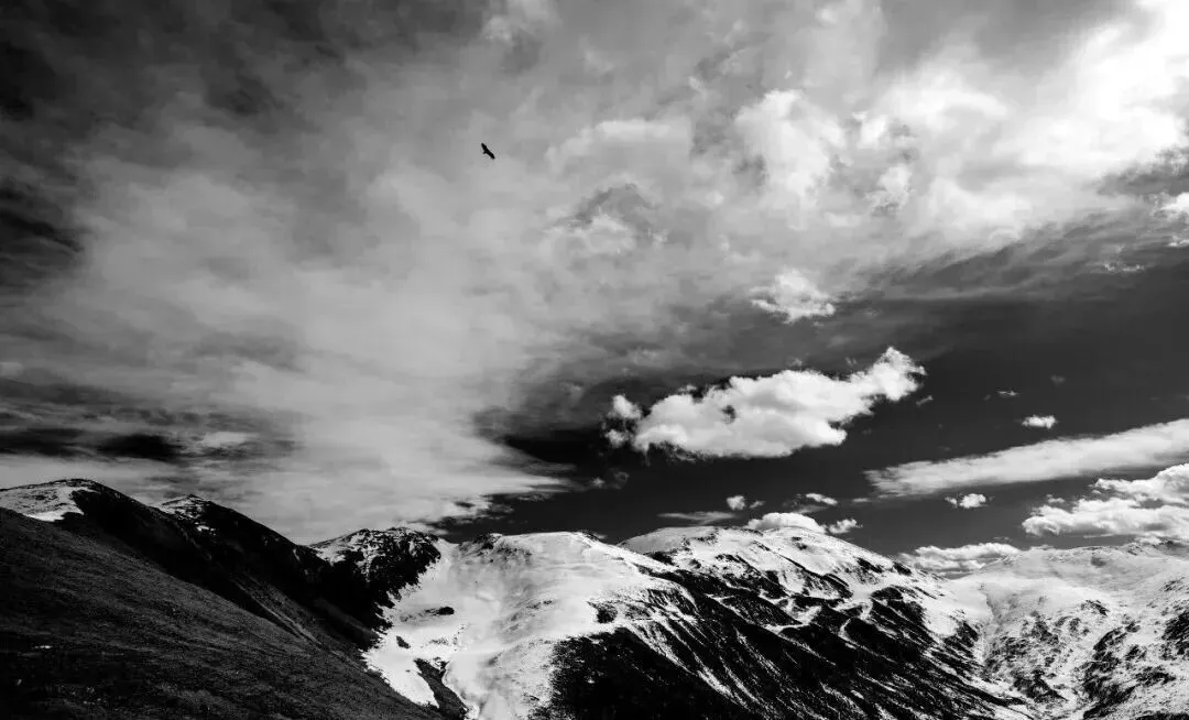 同样是黑白,王雷的《风起云涌》则在瞬间性上做文章。他拍摄的是云海流动,让须臾获得了视觉的永恒,将坚硬的山体柔化为浮动的水墨,让白雪和云一样轻盈,像远处的鸟儿正展开翅膀。