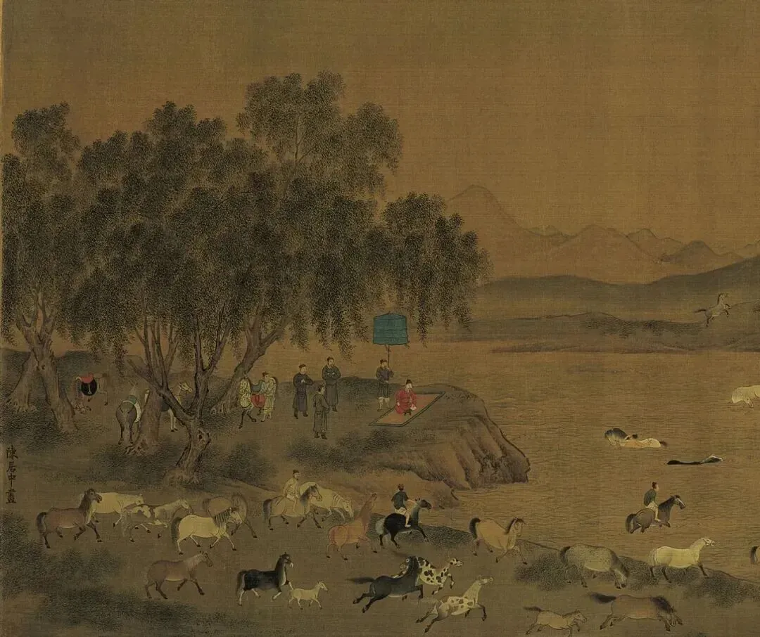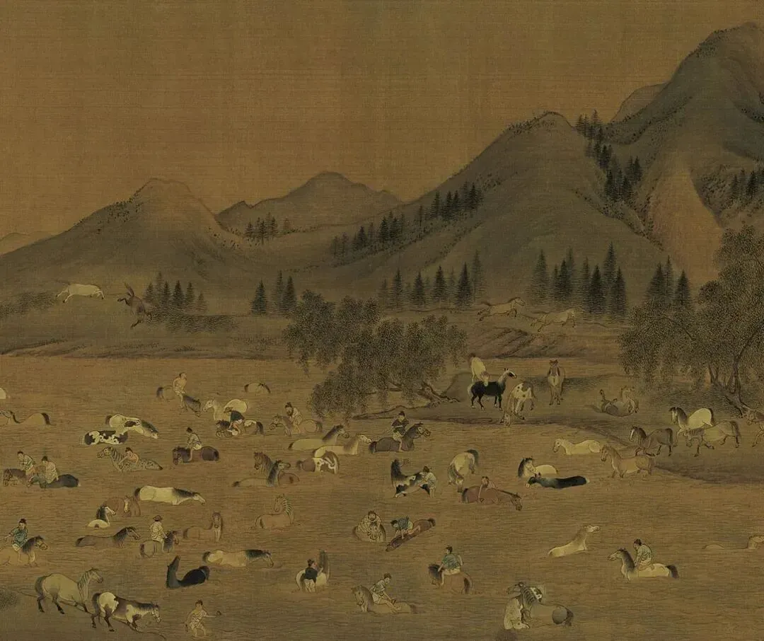 “卓歇”意为立帐歇息。此卷生动描绘了北方游牧民族贵族狩猎归来,人马止歇、宴饮观舞的完整场景。整幅画卷洋溢着浓郁的草原生活气息,没有丝毫烽火与跋涉的苦楚,只有劳作后人与马共处的安然与温情。它展现了一种基于日常劳作与共生的、朴实而深厚的伙伴关系。