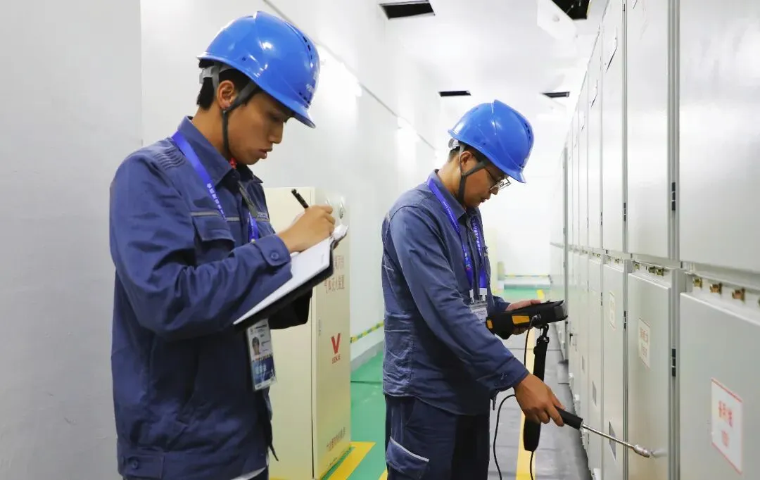 ▲南方电网海南海口供电局工作人员在海南国际会展博览中心开展用电安全检查。(杨永光 摄)