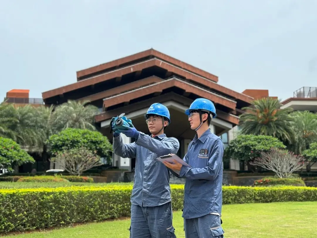 ▲南方电网海南琼海供电局工作人员在博鳌东屿岛开展用电安全检查。(徐小琦 摄)
