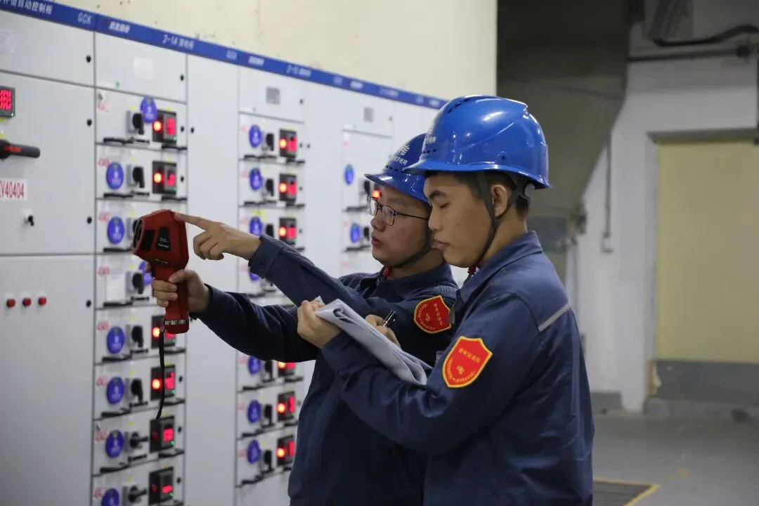▲南方电网海南澄迈供电局工作人员在澄迈各个酒店开展测温巡视工作。(苏梓杨 摄)