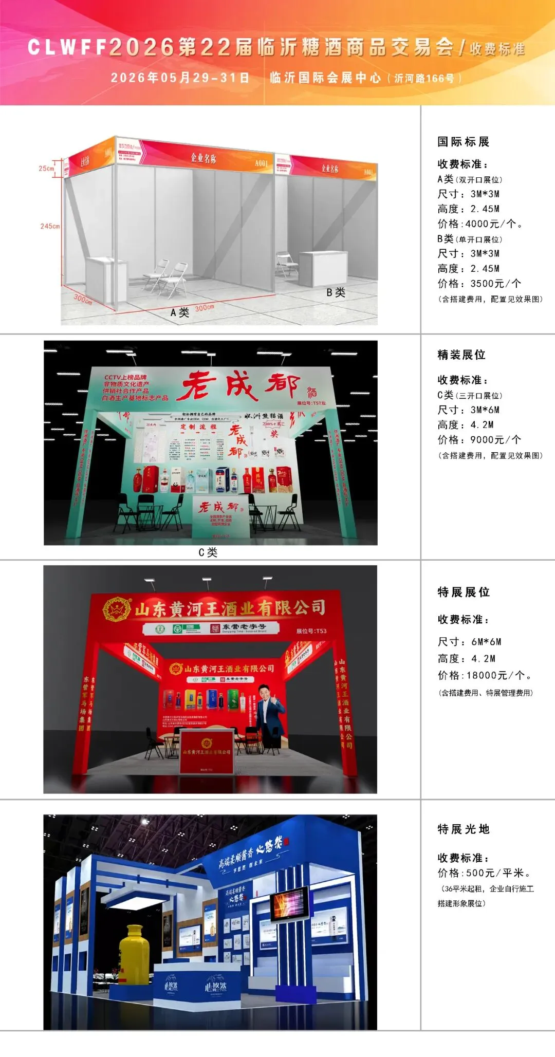 (3)特别提醒:凡参展企业在CLWFF2026春季临沂糖酒会期间有新品发布、论坛、品鉴推介等活动计划,可提前告知联络人,组委会将根据活动内容和质量,择优提前发布公告,提供免费宣传。(展会冠名、赞助及现场广告位:详询大会组委会)。