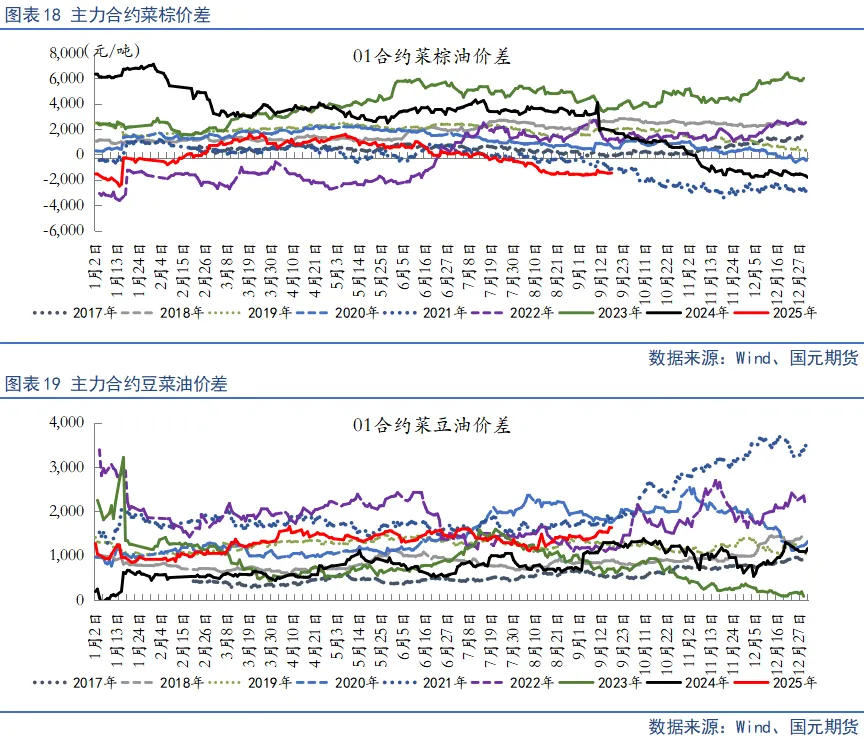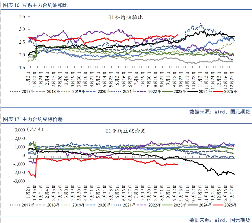 棕榈油方面,产地供需及生物柴油政策是核心驱动。近期产地产量有所下滑提供了一定支撑,四季度初将迎来印度排灯节等传统节日备货旺季。但需要关注印尼B45生物柴油政策的实际落地情况与预期差异。国内方面,豆棕价差持续倒挂在一定程度上抑制了棕榈油的消费吸引力。