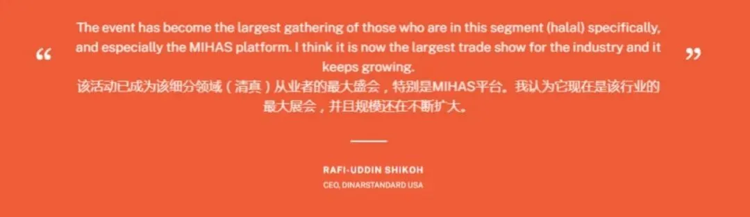 MIHAS 是清真行业的标杆展会,隶属于世界清真周系列活动,并与世界清真大会、国际认证机构大会同期举办,是清真领域专业人士不容错过的行业盛会。