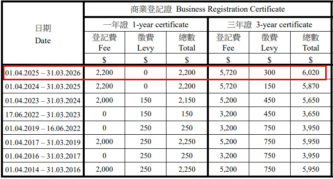 ✔️商业登记证费用:费用为2200港币(一年期),由香港税务局收取。