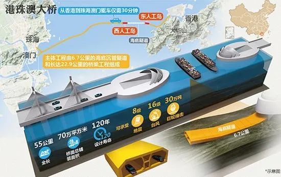 港珠澳大桥是跨越伶仃洋海域,连接珠江口东西岸的关键性工程,大桥建成通车实现了珠海、澳门与香港的陆路连接,极大地提升了香港与珠三角西部地区之间的通行效率。其中,珠海至香港国际机场的车程由约4小时缩短至约45分钟,珠海至香港葵涌货柜码头的车程由约3.5小时缩短至约75分钟,极大便利了三地人员交流和经贸往来,对促进粤港澳大湾区的发展,全面推进内地与香港、澳门互利合作具有重大意义。
