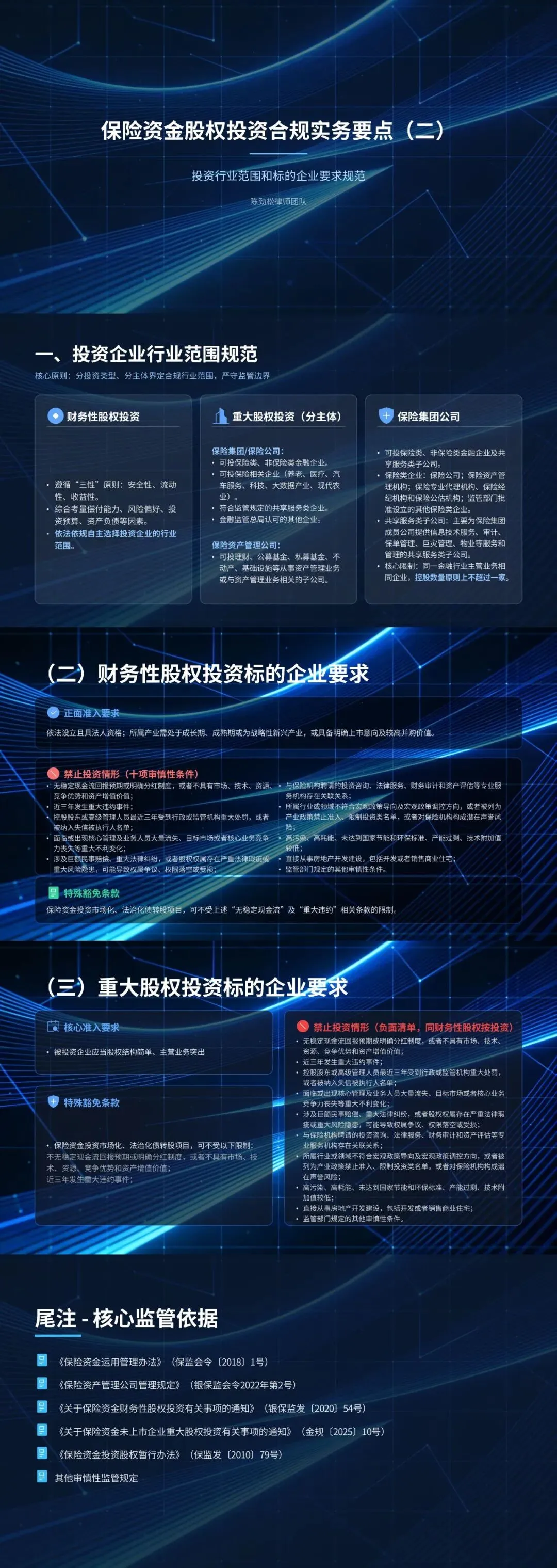 业务领域:深耕金融保险行业,陈劲松律师团队具有丰富的金融保险机构工作和服务经验,熟悉金融保险行业的运行规则、业务流程、工作机制和风险防控,团队专注金融保险行业领域,包括保险金融监管与合规、公司治理、投融资、保险与再保险争议解决、海事海商、金融民刑交叉业务、涉外/跨境仲裁等。累计为80余家保险集团、保险公司、商业银行、保险资管公司、基金管理公司、信托公司、保险中介机构等保险金融机构和大型央企国企提供常年及专项法律顾问服务,有着丰富的实务经验和前沿理论研究实践。