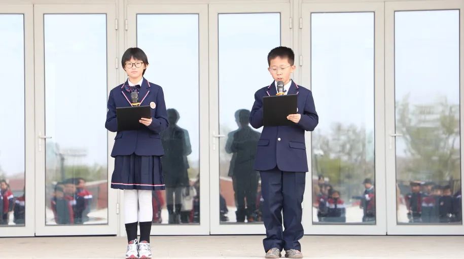 Xu yuejingyi, Class 1, Grade 6, delivered a speech under the national flag