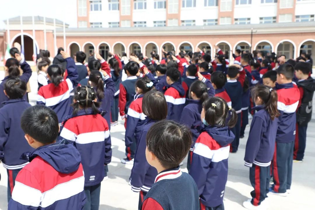 迎着晨曦,在雄壮的国歌声中,全体师生齐唱国歌,向冉冉升起的五星红旗行注目礼,以饱满的热情,在国旗下奏响多元文化的动人乐章。