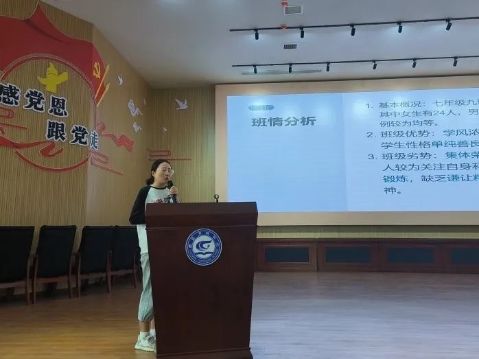 本次大赛成立了由校级领导组成的评委组。全体班主任和35岁以下的青年教师到场观摩学习。遵循“以竞赛促学习、以活动助成长”的发展理念,采取现场展示和情景答辩相结合的形式,共分:班级管理展示和学生案例分析两个环节,旨在展示班主任工作技巧,以及表达、应变、协调、处理突发事件的专业能力,充分彰显班主任的综合素质。