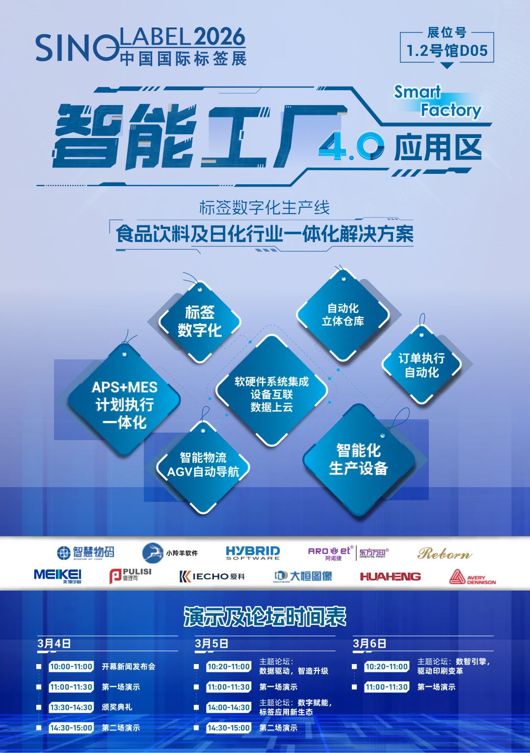 从用户实际生产需求和场景出发,华南展设置【智能工厂4.0应用区】。打破以单机设备静态陈列和视频动画概念播放为主的传统呈现模式,使观众置身于一座真实运行中的微缩智能车间——从订单下达、智能排产、印前拼版、印刷及印后加工到质检入库,全流程实时呈现,让标签智能制造看得见、摸得着、可复制!快来一起触摸未来工厂的心跳~