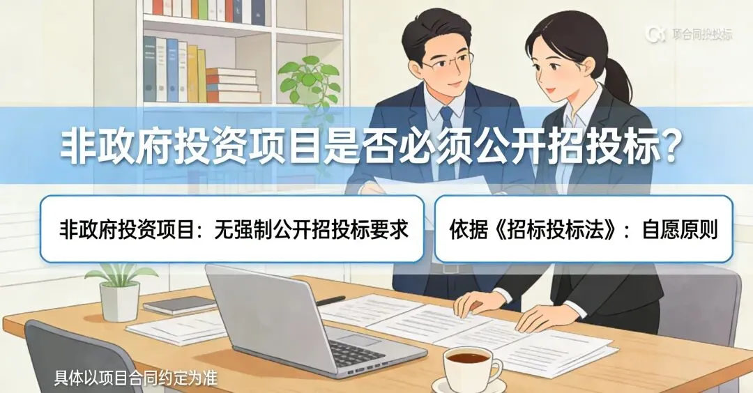非政府投资项目,指资金来源不含国有资金、国家融资、国际组织/外国政府贷款援助,且由民间资本、民营企业全资或控股主导的项目。法定强制公开招投标的边界非常清晰: