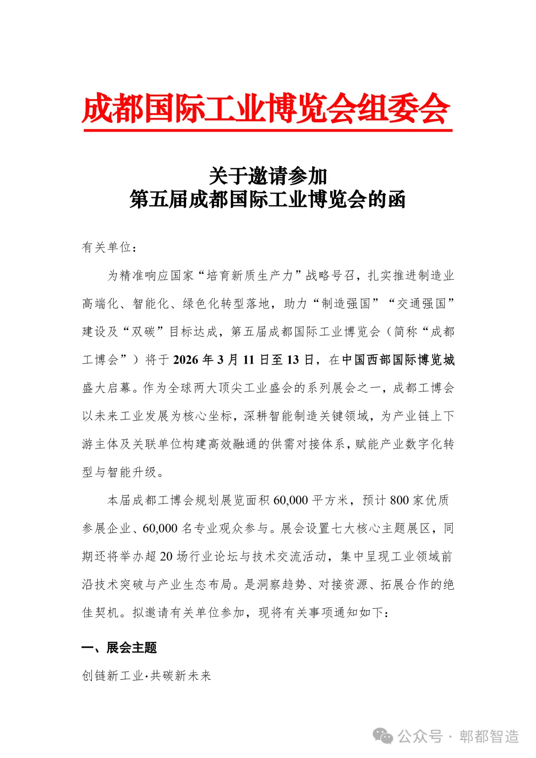 报名通知 | 2026年成都国际工业博览会观展报名开始啦!