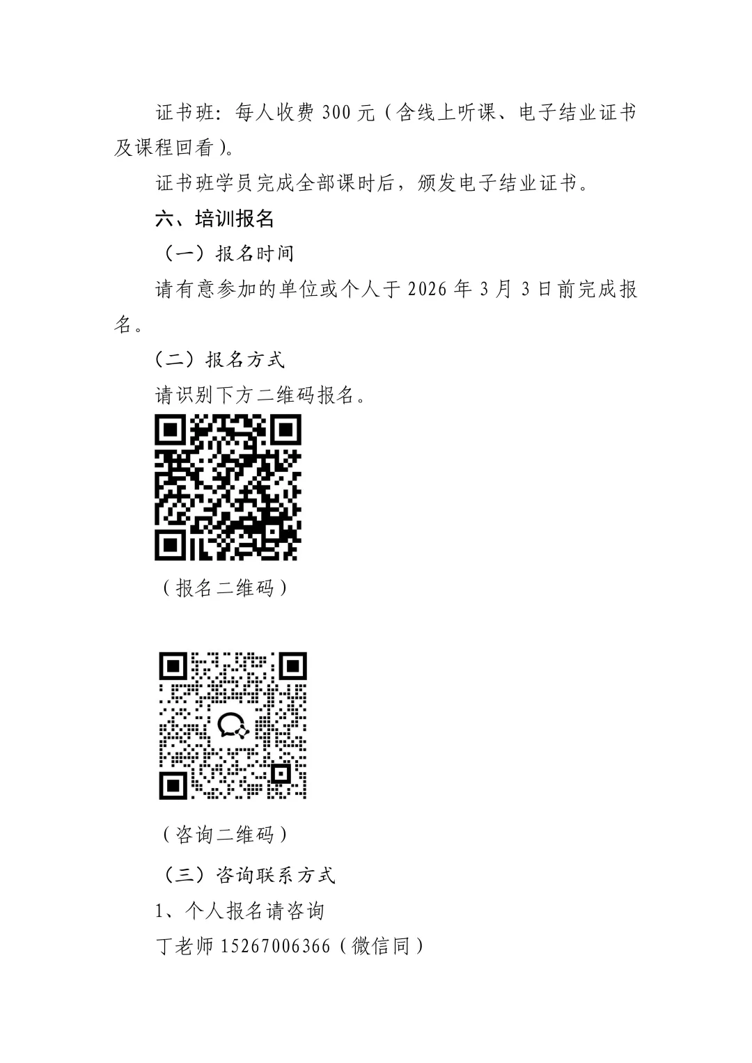 听课班:每人收费 100 元;证书班:每人收费 300 元(含线上听课、电子结业证书及课程回看)。1、个人报名请咨询