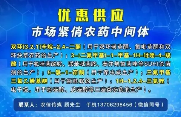 因企业发展和业务调整等多种原因,有多家农药企业生产许可证、登记证等资质拟以收购、控股、参股或整体收并购或合作等形式通过《农药市场信息》传媒(农信传媒)进行中介服务。洽询电话(同微信)13706298456 联系人:顾先生。