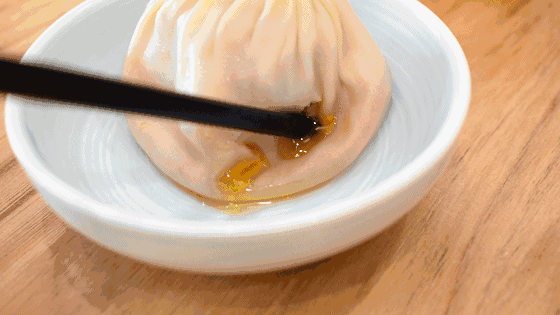 汤包皮薄,却能做到怎么蹂躏都不容易破;把汤包拎起来先咬出一个小口,吸出里面的汤汁,鲜美无比,咬下去的肉质也是Q弹细嫩。