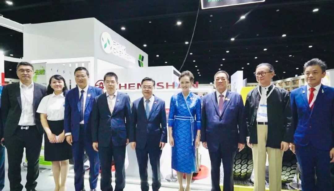 博览会期间,中国驻泰国特命全权大使张建卫先生、泰国商业部长素帕津·素吞攀女士、中国商务部亚洲司司长王立平先生、中国驻泰国大使馆经济商务处公参江伟先生、中国驻泰国大使馆经济商务处参赞张潇潇女士、泰国中国企业总商会主席刘全雷先生、泰国总商会暨泰国贸易院主席陈培强先生、泰国国防部发展司令部前参谋长塔瓦猜·楚桑蓬先生、Amata合作公共有限公司董事会主席邱威功先生、WHA伟华实业发展大众有限公司首席执行官帕宗伟·蓬西瓦派先生、首席商务官拉达·罗贾纳维莱德女士等中泰政商代表莅临浦林成山展台,听取浦林成山轮胎(泰国)有限公司总经理张有干先生对公司实力、核心技术、产品的介绍。泰国中华总商会主席林楚钦先生、泰国对外贸易部阿拉达·富安通女士与浦林成山轮胎(泰国)有限公司人力资源中心总监李雅楠女士就泰国原产地合规政策进行交流探讨。