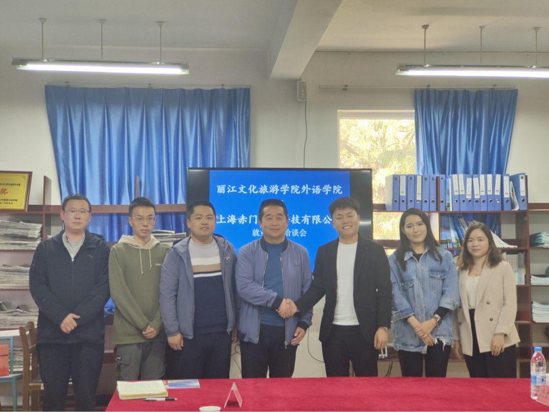 受学院邀请,赤门教育董事长刘洋吉,人力部门负责人林亚左,外事留学负责人马俊怡三位领导参加了本次洽谈会。外语学院院长聂志锋,党总支书记李帅彪,外语学院团总支书记兼学工干事宝音,日语专业辅导员康佳晨出席本次洽谈会。