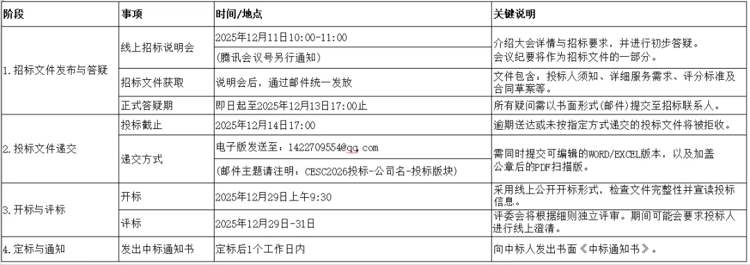本次招标将严格遵循以下程序进行,请各投标人密切关注各时间节点。