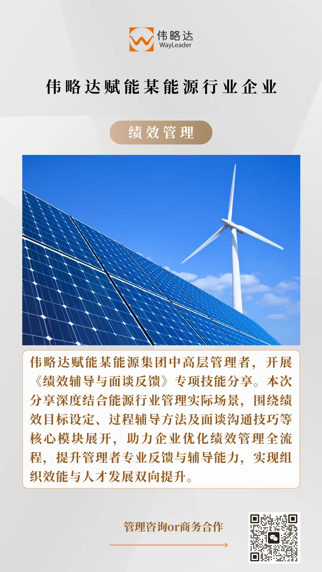 伟略达赋能某能源集团中高层管理者,开展《绩效辅导与面谈反馈》专项技能分享。本次分享深度结合能源行业管理实际场景,围绕绩效目标设定、过程辅导方法及面谈沟通技巧等核心模块展开,助力企业优化绩效管理全流程,提升管理者专业反馈与辅导能力,实现组织效能与人才发展双向提升。