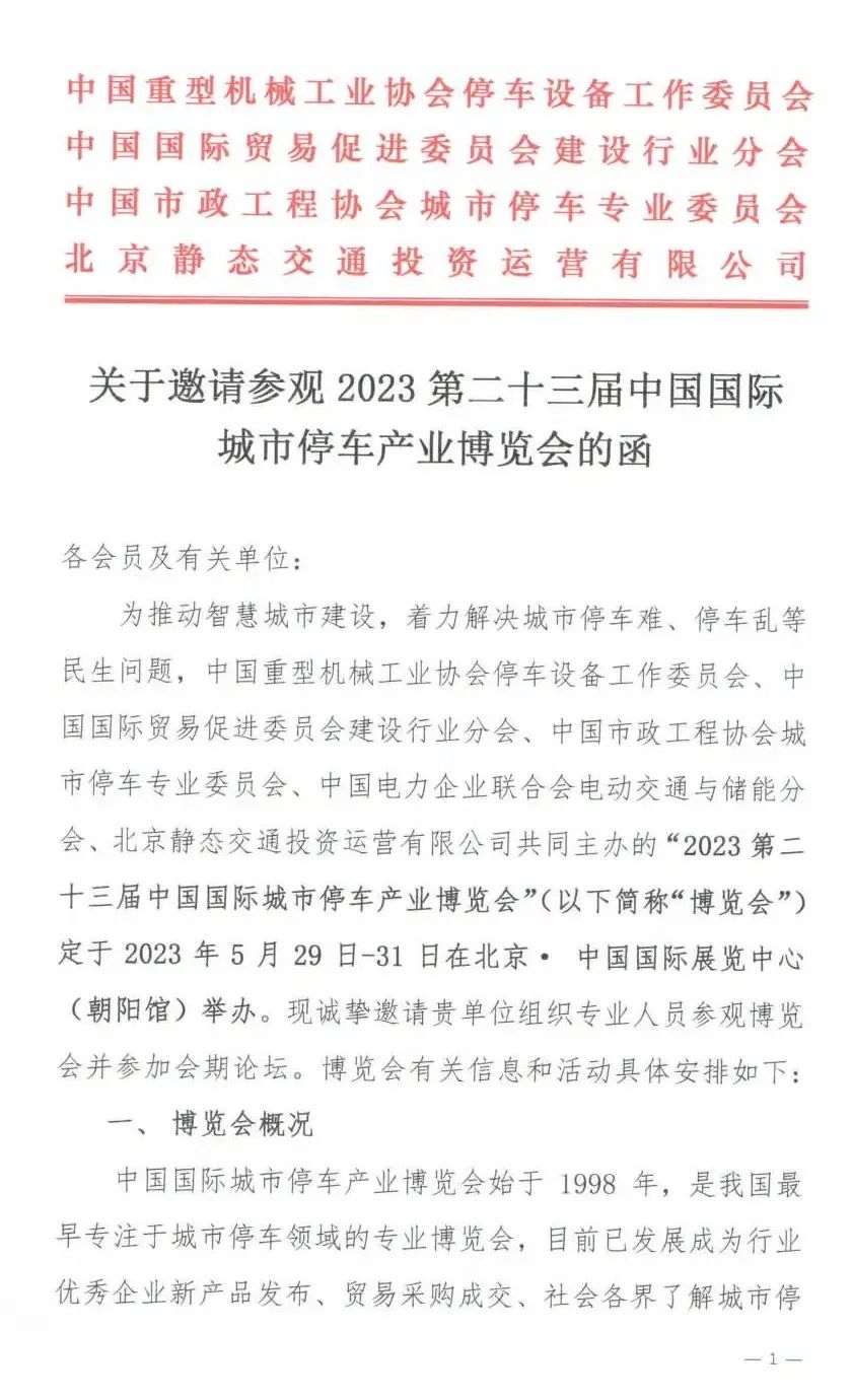 北京停车展 | 关于邀请参观2023第二十三届中国国际城市停车产业博览会的函