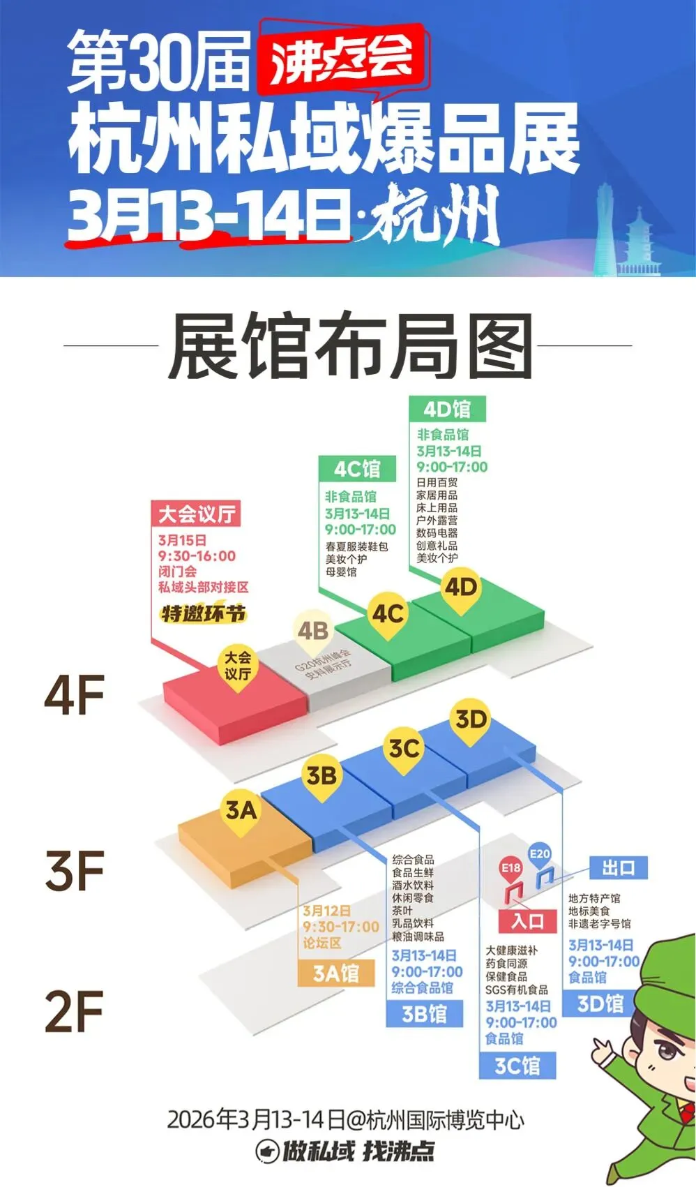 第30届沸点会暨2026杭州私域开年展共计千家展商带来超万款应季新品爆品,所有展商100%确认到场,展会将于3月12日-14日在杭州如期举办。