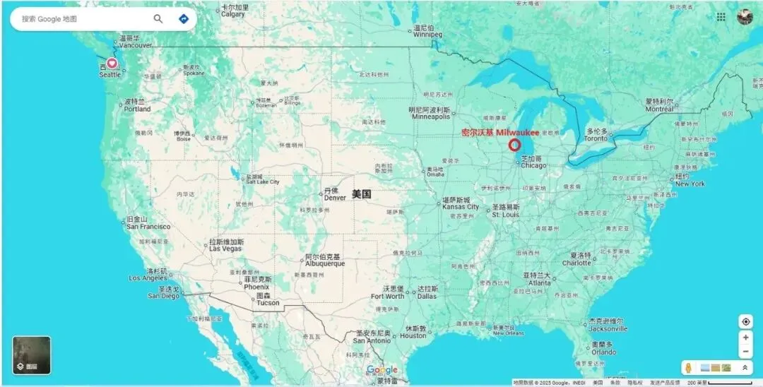 密尔沃基(Milwaukee)是美国威斯康星州的最大城市,也是该州经济和交通中心,坐落在美国五大湖之一的密歇根湖西岸(如下图)。