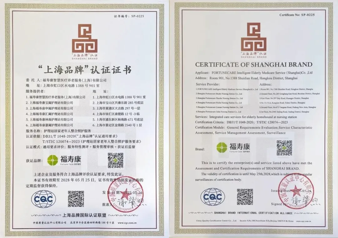 日前,复容投资企业——福寿康凭借旗下“护理站居家老年人整合照护服务”荣获“上海品牌”认证,成为居家养老服务行业首个获此认证的企业,标志着福寿康在服务创新、技术创新、标准引领、服务质量和品牌影响力等方面均达到了全新高度。“上海品牌”认证是建设上海“五个中心”、打响“四大品牌”、推动上海高质量发展的重要举措,通过树立一批新时代的品牌标杆,着力把“上海品牌”打造为驰名中外的城市名片,构筑代表中国参与国际竞争的高品质品牌集群。上海品牌认证标准体系由DB31/T 1048-2020《“上海品牌”认证通用要求》、系列上海品牌认证技术标准及认证实施规则组成。对照国际最高标准、最好水平,形成“上海标准”,并以此开展上海品牌认证。