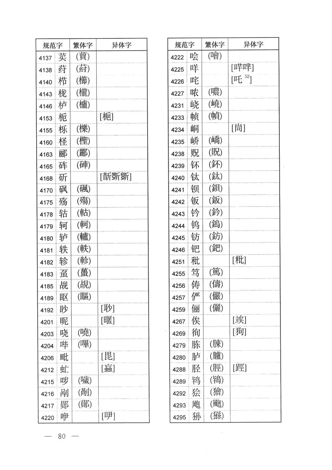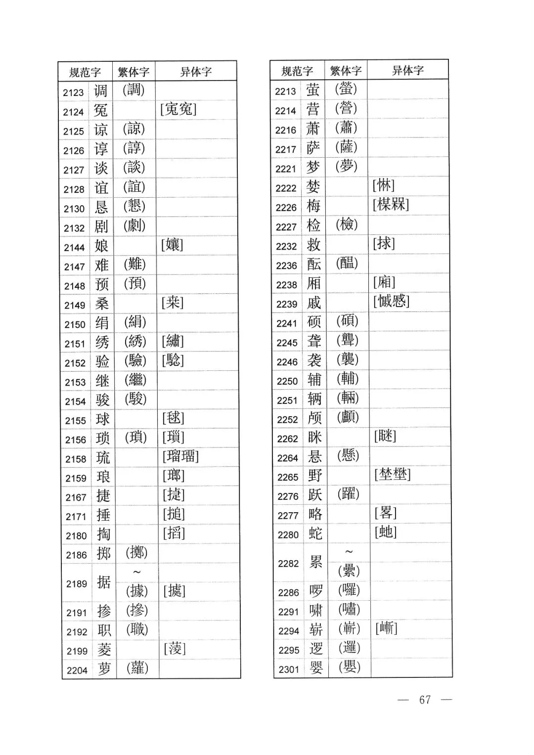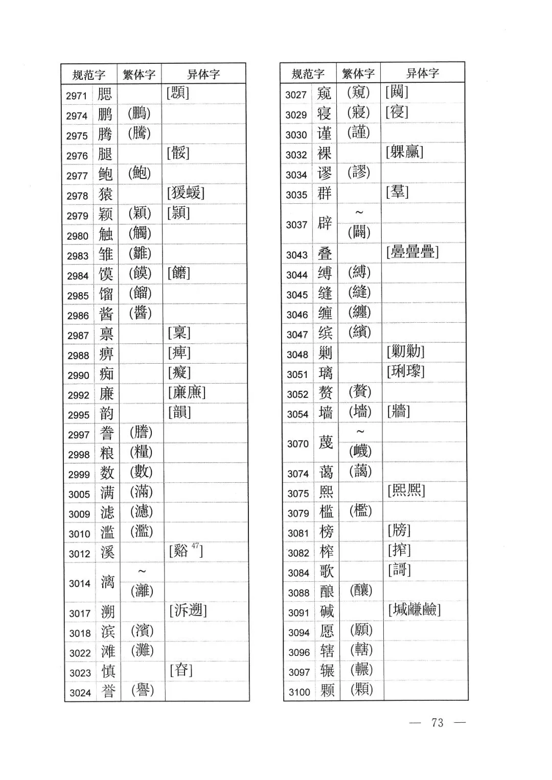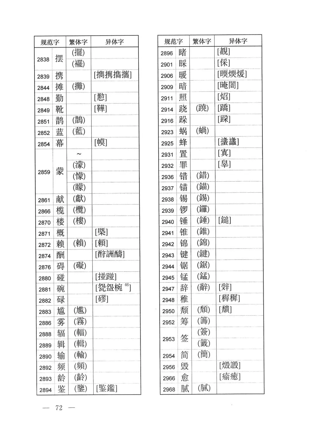 此外,还要特别注意姓氏的简化对应,如范、姜、种、岳、于等姓氏,是没有繁体字的。“苏”姓的繁体字是“蘇”,又要与“囌”(嚕囌)字相区别。“蘇”用作“蘇醒”义时,亦可写做“甦醒”,但不能反过来将“蘇東坡”写做“甦東坡”。“万”在复姓“万俟”(音mòqí)中,并无对应的繁体字,但作姓氏wàn时,它的繁体字是“萬”。