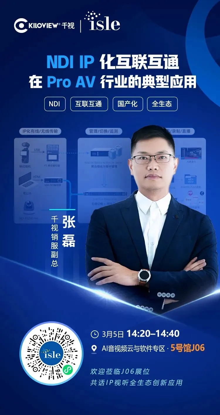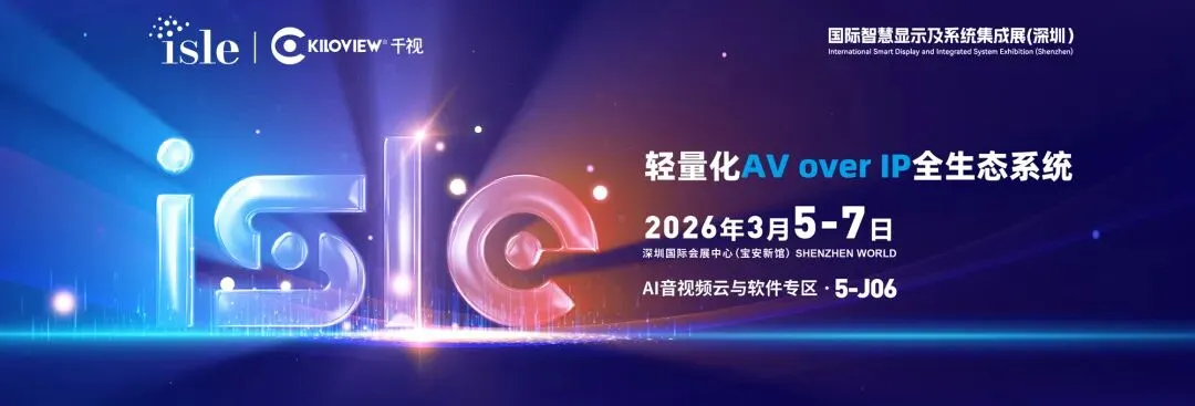 作为领先的 AV over IP 全生态技术服务提供商,千视将首次亮相 ISLE 2026(AI 音视频云与会议系统专区,5号馆J06展位),展示国产NDI音视频IP化全生态方案在分布式显示与专业集成领域的落地实践与创新应用。