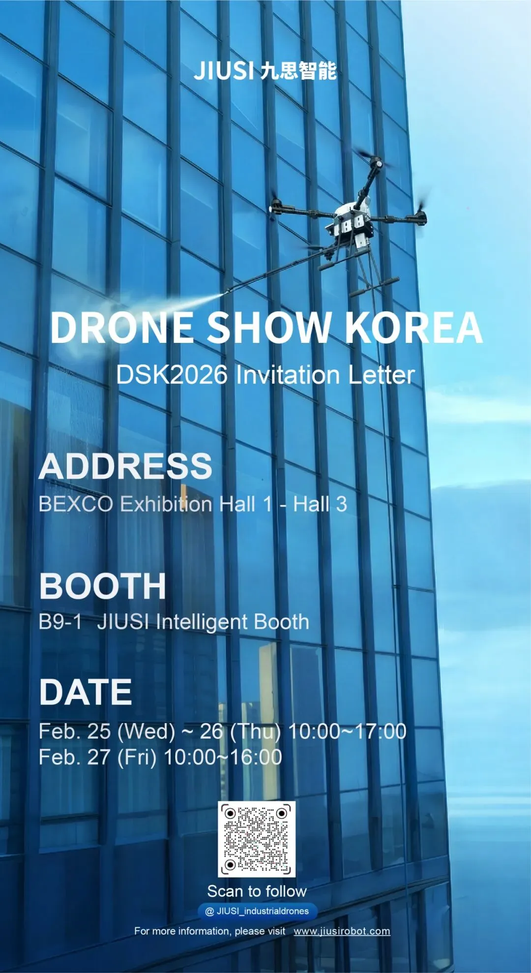 此次亮相DSK 2026,是九思智能走向国际、展示自研实力的重要契机。未来,九思智能将持续深耕高空清洗领域,优化核心解决方案,以科技赋能高空清洁行业变革,与全球伙伴携手,共推无人机产业高质量发展。展会将持续至2月27日,欢迎各界朋友莅临九思智能展台B9-1,近距离了解D15R一体化解决方案的独特优势!