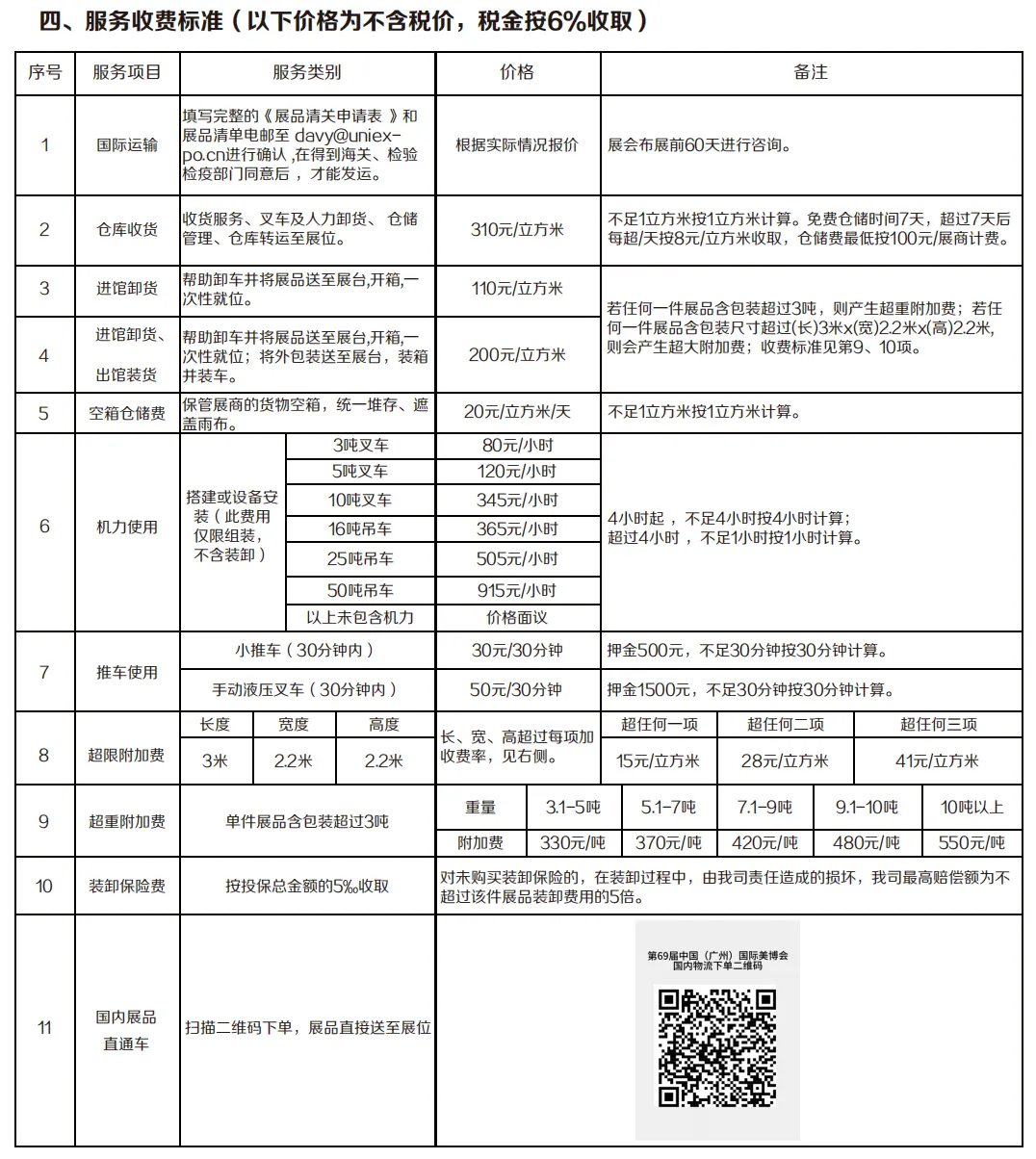服务收费标准(以下价格为不含税价,税金按6%收取)