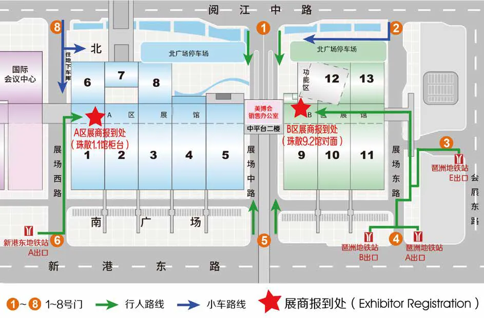 展馆B区:地铁8号线琶洲站A/B出口或地铁11号线琶洲站E出口(靠近广交会展馆3号门)