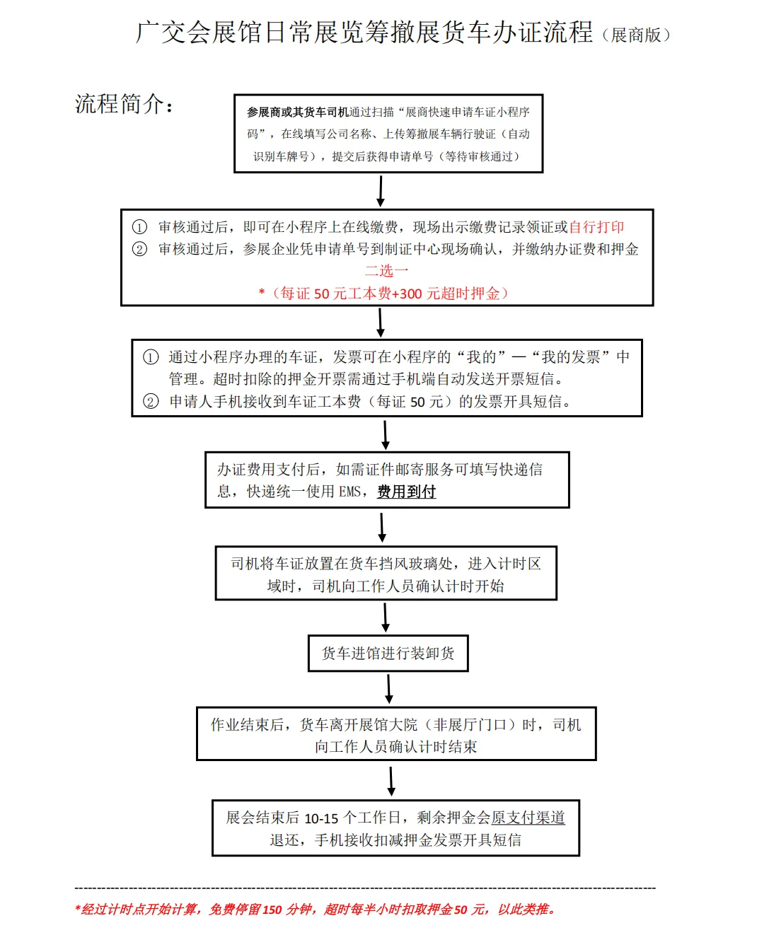 (3) 每张车证只能出入展馆大院一次。