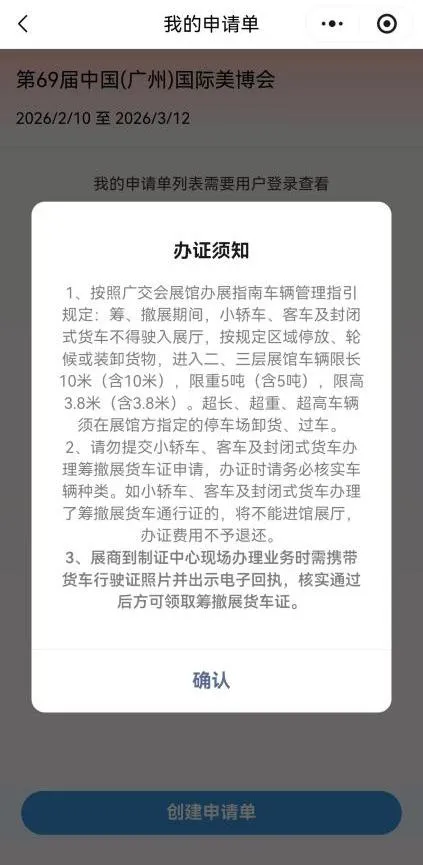 (2) 没有办理货车证的车辆不得驶入展馆范围,只允许在户外轮候区停车。