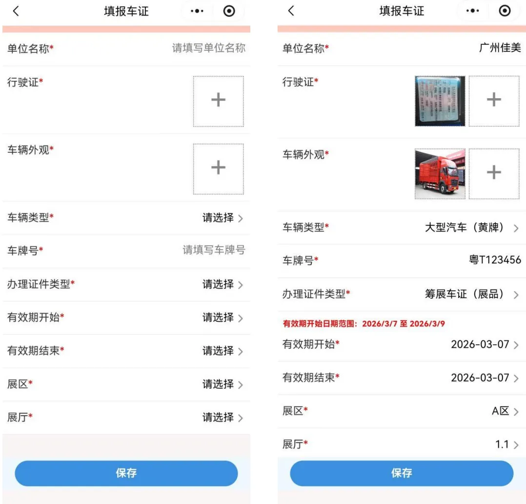 二、在线填写公司名称及筹撤展车辆证件信息