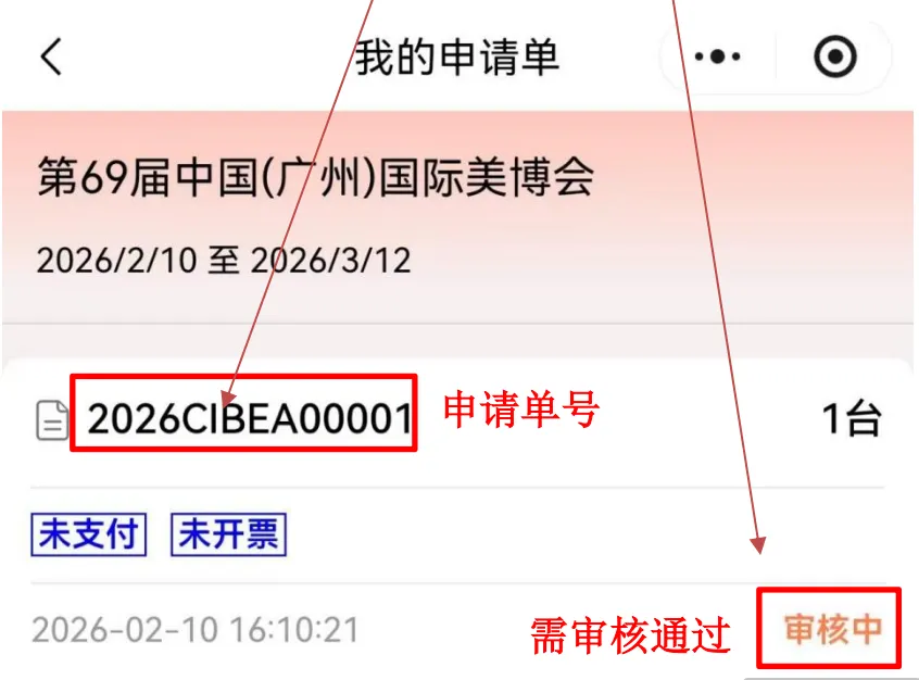 ②审核通过后,参展企业凭申请单号到制证中心现场确认,并缴纳办证费(每证 50 元工本费+300 元超时押金),建议使用微信或支付宝扫码支付。