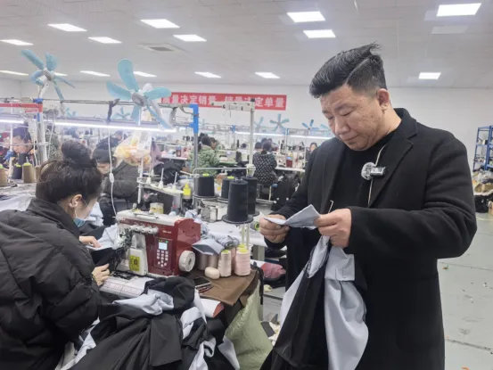在瑞鑫制衣的车间里,员工盼盼正专注地打包服装,动作娴熟流畅。2023年新厂房一开,她就来工作了。“这里按时发工资,按时休假,而且离家近,既能赚到钱,又能照顾孩子,比之前在外地打工心里踏实多了。”